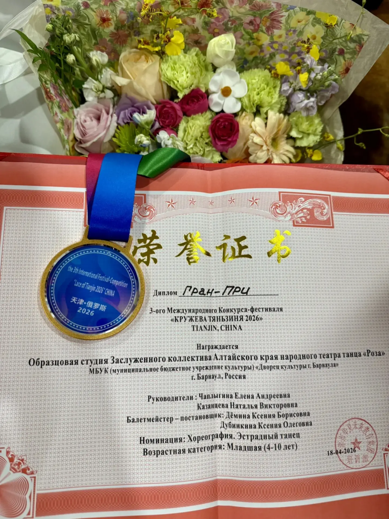 С радостью делимся крутой новостью: Образцовая студия Заслуженного коллектива Алтайского края народного театра танца «Роза» произвела настоящий фурор на III Международном конкурсе-фестивале «Кружева Тяньцзиня 2026» (Китай).