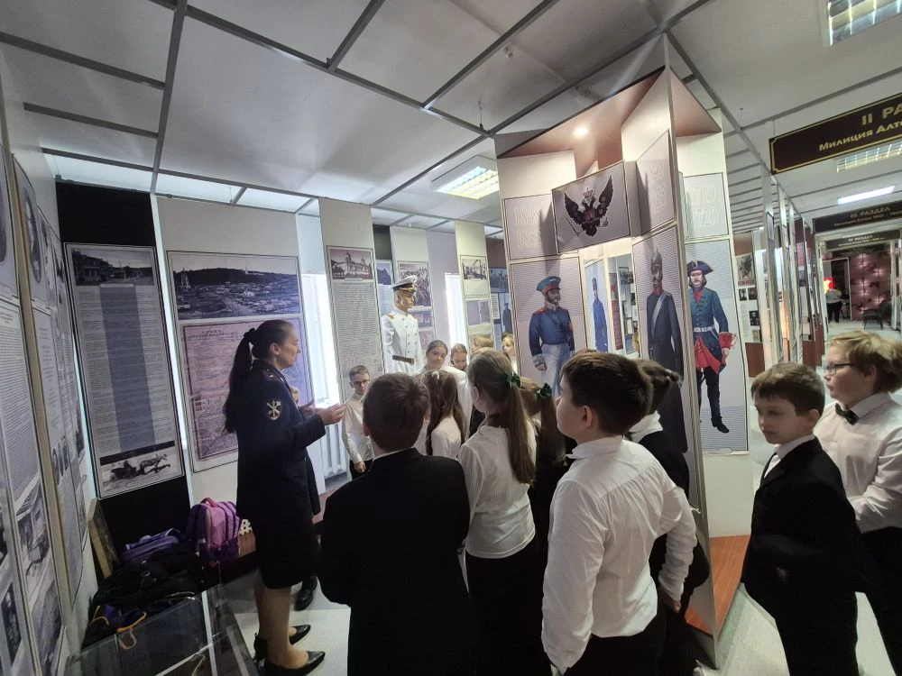 Увидели форму и снаряжение российских полицейских и образцы обмундирования разных эпох ( легко смогли отличить от вражеской формы). В музее представлена коллекция изъятого оружия, а также личные вещи бывших сотрудников и героев службы. Множество стендов памяти тех, кто погиб при исполнении служебного долга.