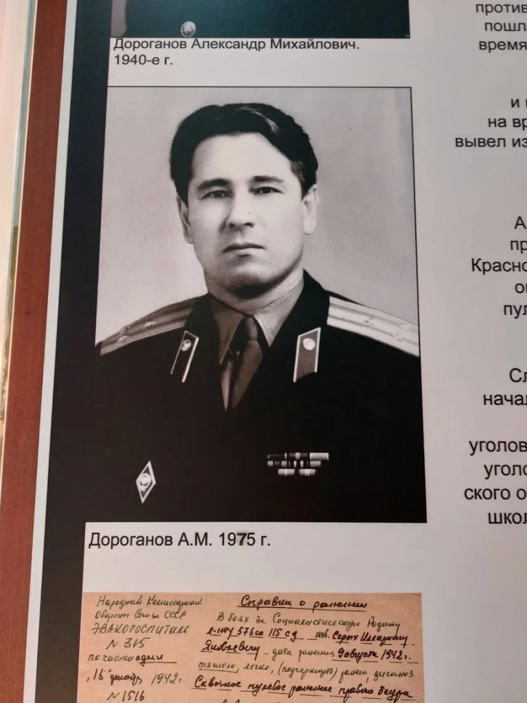 Были приятно удивлены, увидеть стенд посвященный ветерану ВОВ Дороганову Александру Михайловичу, который в 17 лет прошёл с боями от Смоленска до Кёнигсберга, и даже после серьёзных ранений продолжил службу в полиции. 8 февраля ему исполнилось 101 год и именно для него мы записывали видео поздравление.